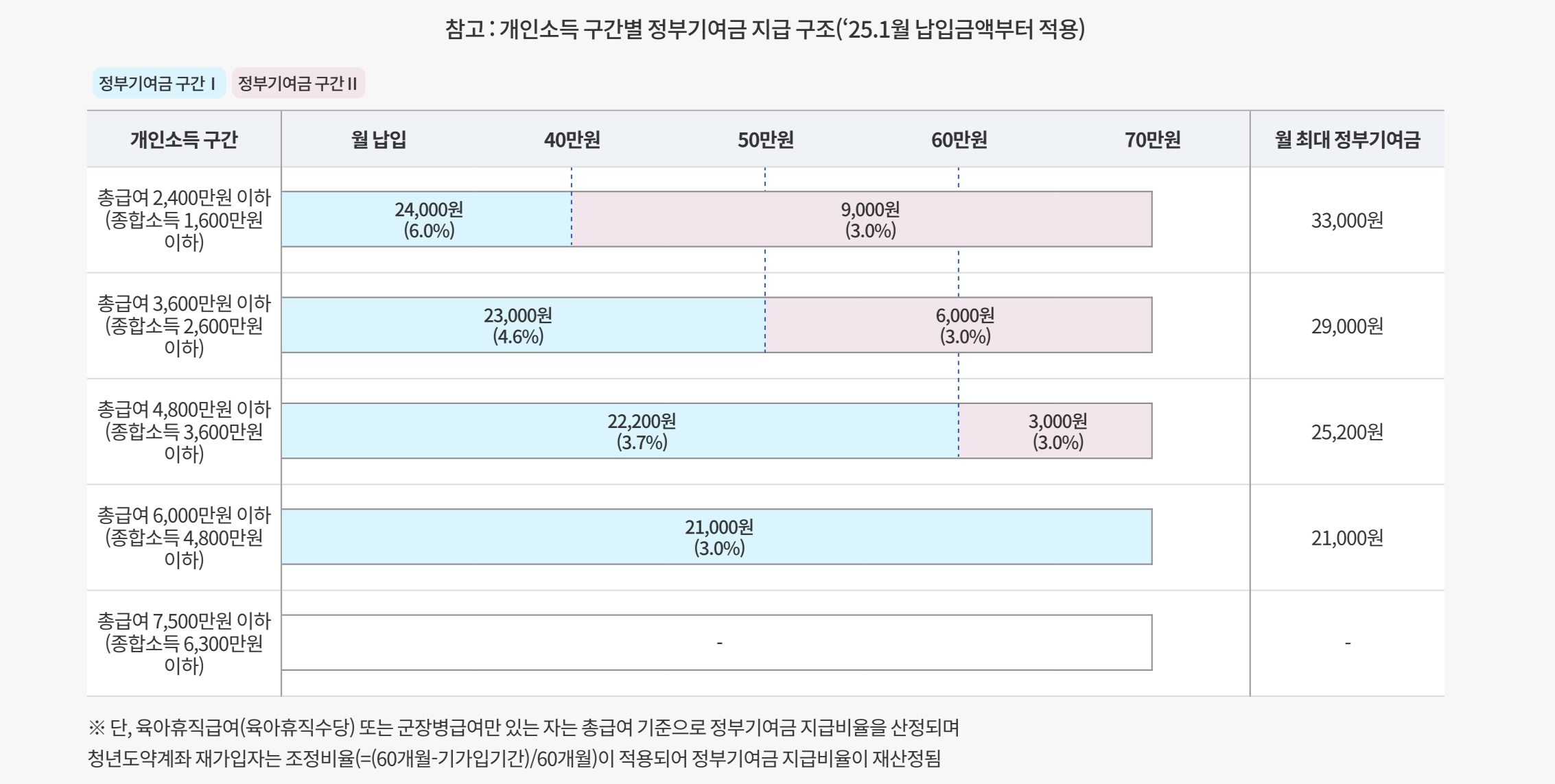 • [정부기여금] 납입액에 비례해 소득구간별 정부기여금 지원