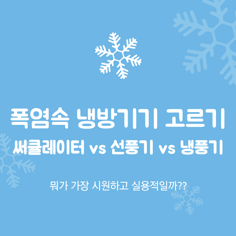 🧊 폭염 대비 실내 냉방기기 추천 – 에어써큘레이터 vs 선풍기 vs 냉풍기 비교