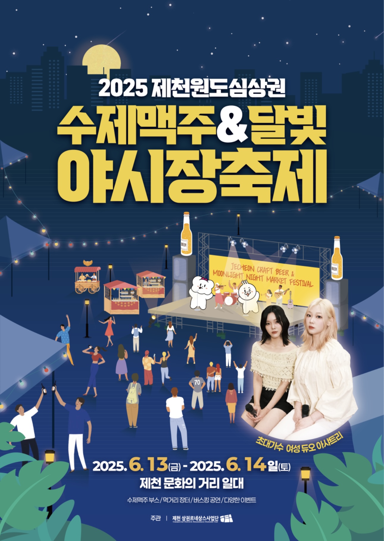 | 제천 수제맥주 & 달빛야시장 | 충북 제천 | 6월 13일 ~ 6월 14일 | 제천 문화의 거리 | 야경 + 수제맥주, 푸드트럭, 공연 즐기기 |